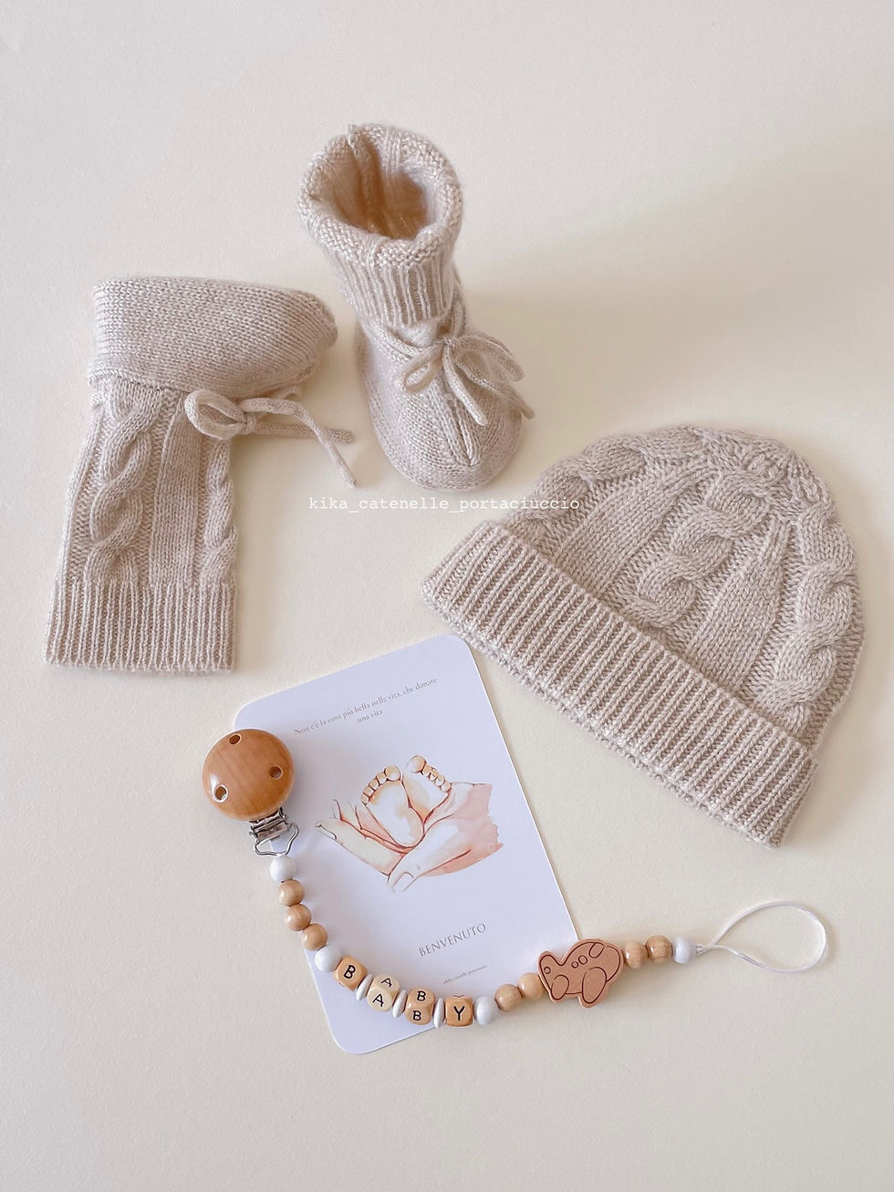 Set di catenella portaciuccio e sonaglio e' un regalo ideale per la nascita, il battesimo ed altre occasioni speciali. Tutti i due prodotti aiutano allo sviluppo sensoriale, motorio e cognitivo del bambino.